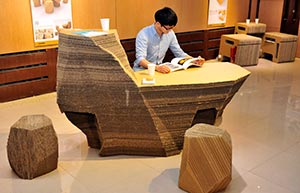 Paper-made furniture lights up art show