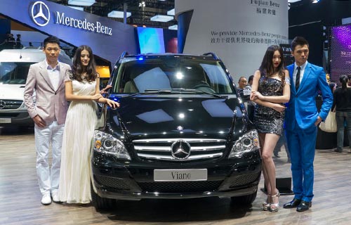 Models at Mercedes pavilion at 2013 Auto Guangzhou