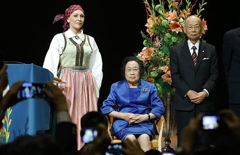 China's Tu Youyou (2nd L) who won 2015 Nobel Prize in Physiology or Medicine attends a lecture in Karolinska Institutet, Stockholm, capital of Sweden, Dec 7, 2015. [Photo/Xinhua]