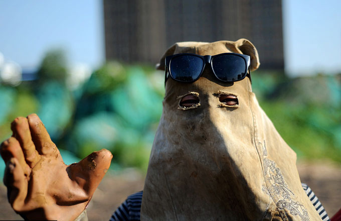 Children pose with watermelons carved into the Chinese character Liqiu, the beginning of autumn on the traditional Chinese calendar, in Hefei in East China's Anhui province on August 6, 2017. This year's liqiu falls on Monday. [Photo/VCG]