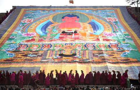 Buddha thangka display in NW China's Gansu