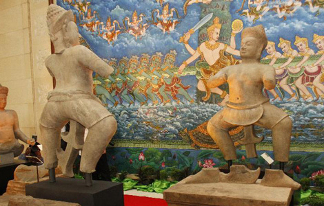 Cambodia welcomes home 3 looted ancient statues