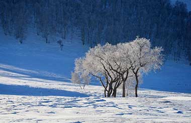Rime scenery on prairie in Inner Mongolia
